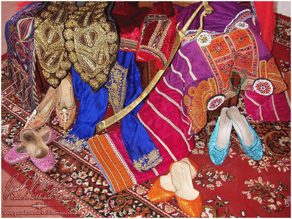bestickte Gewänder, alte Schmuck Erbstücke und