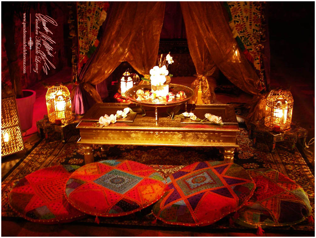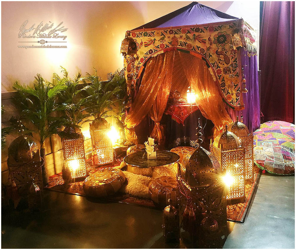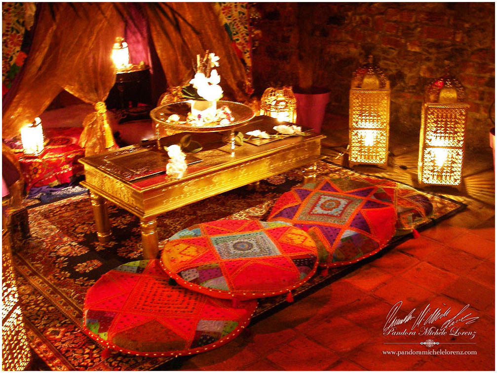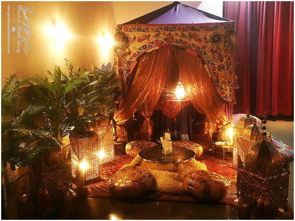 Lederkissen, orientalische Teppiche, Zelt Innenbeleuchtung, Dekorationen, ..., Auf- & Abbau und das alles im