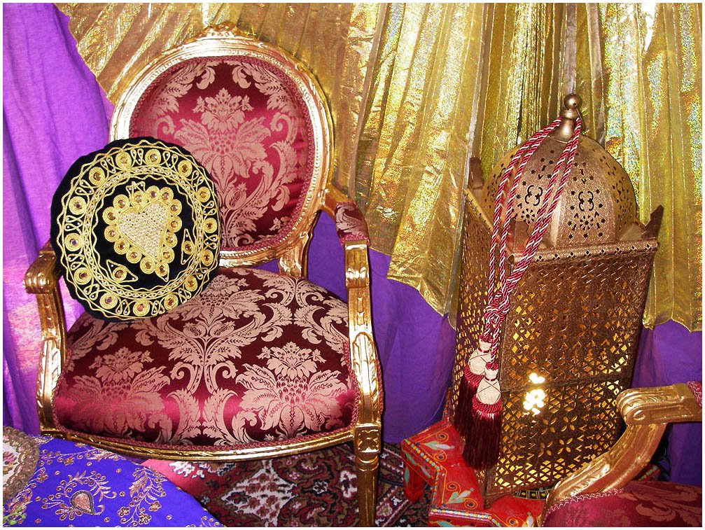 teilweise sehr aufwendigen Stickereien, orientalische Hocker mit