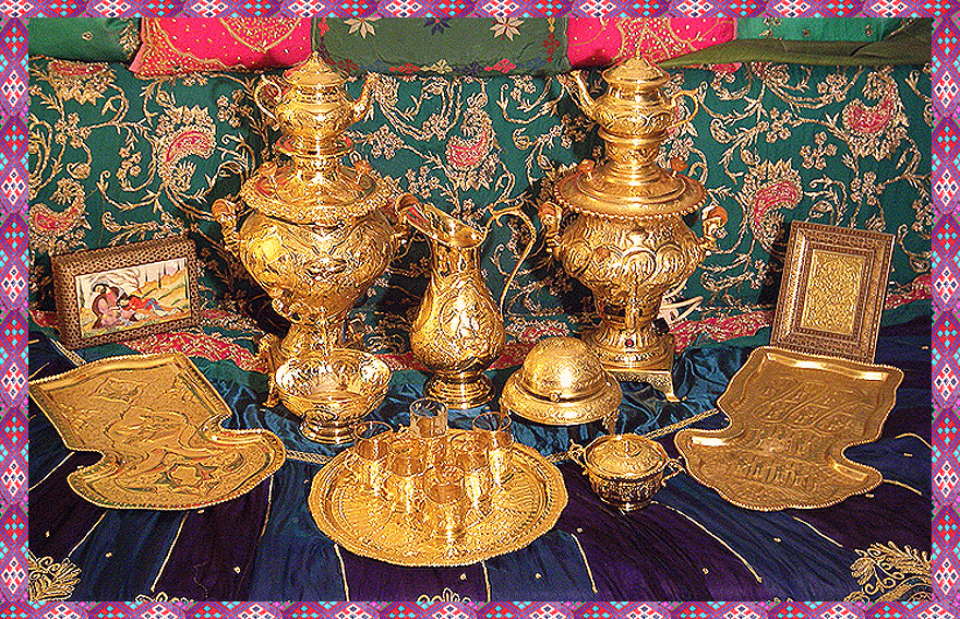 Samowar (siehe Bild) frisch zubereitet und z. B. auf orientalische