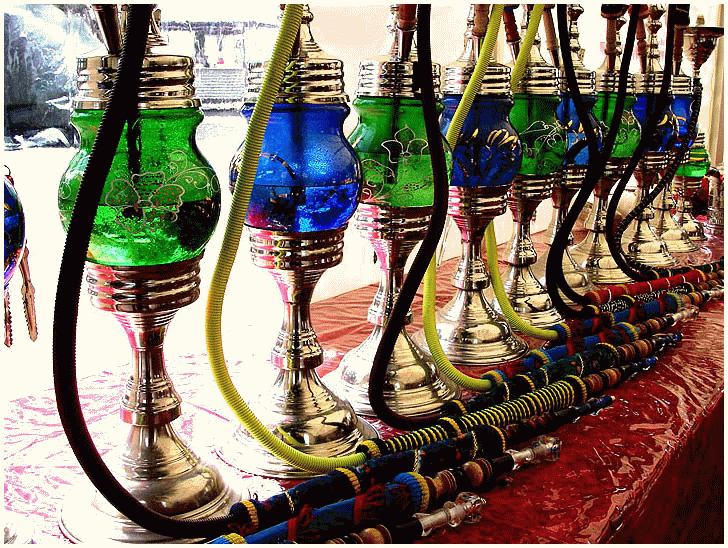 riesige Shisha - Wasserpfeifen mit jeweils einer Höhe von bis zu 110 cm,