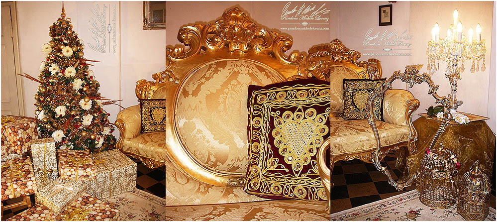 - Die goldene Barock Weihnachts Lounge mit Weihnachtsbaum und Luxus